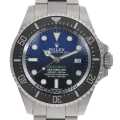 - 旧型シードゥエラー(Ref.16600)も防水性の高いモデルでしたが、更に改良された新型ディープシーは革新的なケース構造のリングロックシステムを搭載し、窒素合金製ステンレススティールのヘリウムバルブが組み込まれており、3,900mもの防水に耐える名前そのものの仕組みとなっています。従来のクラスプは工具を使って長さ調節をするのに対し、本モデルはグライドロッククラスプが装備され、手動で簡単に2mmごと最大20mmまでの調節が可能になりました。こちらは「D-BLUEダイアル」と呼ばれる、12時側がブルー・6時側がブラックのグラデーションになっている独創的なダイアルのモデルです。