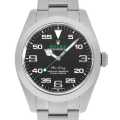 - 2014年に製造終了となったエアキングですが、2016年にエアキング Ref.116900 としてリニューアルして帰ってきました。ケース径は40mmへと大幅サイズアップ。ムーブメントはCOSC認定のCal.3131を搭載。秒針はコーポレートカラーであるグリーンにカラーリングされ、ブラックダイアルとの組み合わせが印象的です。12・3・6・9時以外の二桁のアラビアインデックスがスタイリッシュさを演出します。