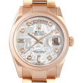 - ロレックスの最上級ラインとして1956年に誕生したハイクラス・コレクション“デイデイト”。高級素材のみを使用しているモデルであり「富と成功の証」とも言われています。こちらはケース・ブレスレットにピンクゴールドを使用した華やかなモデルです。ダイアルにメテオライト(隕石)を加工した特別仕様で、ダイヤインデックスと相まって格調高いドレッシーな仕上がりです。