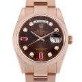 - ロレックスの最上級ラインとして1956年に誕生以来、最高級の素材と質感に拘ったハイクラスシリーズ“デイデイト”。こちらはエバーローズゴールドのケースにチョコレート色のダイヤル、8Pダイヤモンドに2Pルビーを備えたドレス系ロレックスの頂点にふさわしいモデルです。