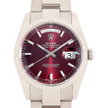 - ロレックスの最上級ラインとして1956年に誕生以来、最高級の素材と質感に拘ったハイクラスシリーズ“デイデイト”。素材はゴールドもしくはプラチナのみを使用しており、唯一フルカレンダーを搭載するモデルです。ムーブメントは専用のCal.3155のクロノメーターを搭載。2000年に新型に切り替わり、クラシカルなドーム型のベゼル(ポリッシュベゼル仕様)を採用しています。
