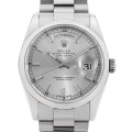 - ロレックスの最上級ラインとして1956年に誕生以来、最高級の素材と質感に拘ったハイクラスシリーズ“デイデイト”。素材はゴールドもしくはプラチナのみを使用しており、唯一フルカレンダーを搭載するモデルです。ムーブメントは専用のCal.3155のクロノメーターを搭載。2000年に新型に切り替わり、クラシカルなドーム型のベゼル(ポリッシュベゼル仕様)を採用しています。