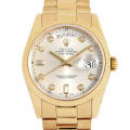 - ロレックスの最上級ラインとして1956年に誕生以来、最高級の素材と質感に拘ったハイクラスシリーズ“デイデイト”。もともとデイデイトは曜日・日付表示機能が付いたカレンダーのことを指しますが、ロレックスはこのデイデイト機能を搭載したモデルに『高級素材』のみを採用することで、成功者が持つ時計としてのステータス性を確立しました。