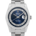 - ドレス系高級モデル、ミリヤード文字盤のデイデイトです。ダイヤが円上に散りばめられたゴージャスな装飾に艶のあるブルー文字盤が高級感と上品なデザインとなります。ホワイトゴールドケースも主張しすぎずしっかりとした存在感を感じられる一本です。