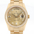 - ロレックスの最上級ラインとして1956年に誕生以来、最高級の素材と質感に拘ったハイクラスシリーズデイデイト。もともとデイデイトは曜日・日付表示機能が付いたカレンダーのことを指しますが、ロレックスはこのデイデイト機能を搭載したモデルに『高級素材』のみを採用することで、成功者が持つ時計としてのステータス性を確立しました。
