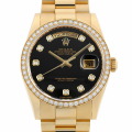 - 1956年の誕生以来、ロレックスの最上級ラインとして最高級の素材と質感に拘ったハイクラスシリーズ“デイデイト”。こちらは、ダイアルに10Pのダイヤ、さらにはベゼルにもダイヤを装飾したゴージャスなモデルです。