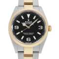 - 全ての探検家に向けて、1953年に開発された"エクスプローラーI"。こちらは2021年発表のRef.124273です。エクスプローラー初のステンレスとイエローゴールドのコンビモデルとなっており、今までにはないにエレガントな印象に仕上がっております。日付表示すら持たないシンプルなデザインはそのままに、ケースは36mmへとダウンサイジング。これは、先々代のRef.114270に範を取ったと言われており、文字盤レイアウトもこの往年の名機に準ずることとなりました。ムーブメントは最新世代と称されたCal.3230を搭載。優美さを備えながらも極めて優れた耐磁性と耐衝撃性、安定的な高精度を実現しており、約70時間のロングパワーリザーブを誇ります。防水性は100m。ロレックス技術の集大成的存在と言えます。