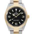 - 全ての探検家に向けて、1953年に開発された"エクスプローラーI"。こちらは2021年発表のRef.124273です。エクスプローラー初のステンレスとイエローゴールドのコンビモデルとなっており、今までにはないにエレガントな印象に仕上がっております。日付表示すら持たないシンプルなデザインはそのままに、ケースは36mmへとダウンサイジング。これは、先々代のRef.114270に範を取ったと言われており、文字盤レイアウトもこの往年の名機に準ずることとなりました。ムーブメントは最新世代と称されたCal.3230を搭載。優美さを備えながらも極めて優れた耐磁性と耐衝撃性、安定的な高精度を実現しており、約70時間のロングパワーリザーブを誇ります。防水性は100m。ロレックス技術の集大成的存在と言えます。