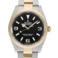 - 全ての探検家に向けて、1953年に開発された"エクスプローラーI"。こちらは2021年発表のRef.124273です。エクスプローラー初のステンレスとイエローゴールドのコンビモデルとなっており、今までにはないにエレガントな印象に仕上がっております。日付表示すら持たないシンプルなデザインはそのままに、ケースは36mmへとダウンサイジング。これは、先々代のRef.114270に範を取ったと言われており、文字盤レイアウトもこの往年の名機に準ずることとなりました。ムーブメントは最新世代と称されたCal.3230を搭載。優美さを備えながらも極めて優れた耐磁性と耐衝撃性、安定的な高精度を実現しており、約70時間のロングパワーリザーブを誇ります。防水性は100m。ロレックス技術の集大成的存在と言えます。