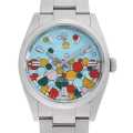 - こちらはセレブレーションモチーフのダイアルを使用しており、背景色にはターコイズブルー、黒い縁取りのさまざまなサイズのドットにはキャンディピンク、イエロー、コーラルレッド、グリーンが用いられています。完全自社製Cal.3230を搭載。パワーリザーブ約70時間。100m防水。オイスターパーペチュアルはデイトジャストの廉価版として登場しながらも、その人気の高さから価格高騰中の一本です。