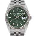 - 1945年に誕生し、今やロレックスの顔とも言える"デイトジャスト"。ロレックスの三大機構(オイスターケース、パーペチュアル機構、デイトジャスト機構)を全て備えたモデルです。ダイアル色・ケース素材などの組み合わせは多岐に渡り、非常に多彩なバリエーションが存在するのが最大の魅力です。