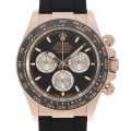 - 言わずもがなのロレックス・スポーツモデルの最上位機種であり、最人気機種のコスモグラフ・デイトナ。1959年に誕生したデイトナですが、24時間耐久カーレースで有名なデイトナ・インターナショナル・スピードウェイの名にちなんで命名されました。こちらはブライトブラックとサンダストを組み合わせたダイアル、ブラックセラクロムベゼルを備えています。またケースは2005年に発表され、美しさを長く維持するために自社開発後特許を取得したエバーローズゴールドが採用されており、より魅力的な1本となっています。