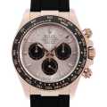- 言わずもがなのロレックス・スポーツモデルの最上位機種であり、最人気機種のコスモグラフ・デイトナ。1959年に誕生したデイトナですが、24時間耐久カーレースで有名なデイトナ・インターナショナル・スピードウェイの名にちなんで命名されました。こちらはブライトブラックとサンダストを組み合わせたダイアル、ブラックセラクロムベゼルを備えています。またケースは2005年に発表され、美しさを長く維持するために自社開発後特許を取得したエバーローズゴールドが採用されており、より魅力的な1本となっています。