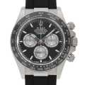 - 言わずもがなのロレックス・スポーツモデルの最上位機種であり、最人気機種のコスモグラフ・デイトナ。24時間耐久カーレースで有名なデイトナ・インターナショナル・スピードウェイの名にちなんで命名されました。こちらは2023年発売モデルです。ホワイトゴールド製のケースに、モノブロック(一体構造)のブラックセラクロムベゼルを採用。上質なセラミックを使用することで耐蝕性、耐傷性に優れ、色褪せを防ぐことに成功しています。また、ベゼルの目盛りにプラチナの微粒子層を蒸着し、PVD加工することで高い視認性をも実現しています。さらに今作からベゼルの縁周りにメタル素材が使用され、細かな変更がロレックスのこだわりが感じられます。