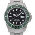 - 2020年のバーゼルワールドで発表された"サブマリーナ デイト"です。ケースサイズが41mmにサイズアップされ、フラッシュフィットとブレスレットのバランスも調整されました。グリーンベゼルとブラックダイアルの組み合わせは、2003年~2010年に生産されていた16610LVを彷彿する組み合わせです。 ムーブメントにはCal.3235を搭載。香箱の構造が一新されたことによりパワーリザーブが70時間に延長されています。防水性は300mです。