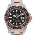 - 2018年のバーゼルワールドにて発表された"GMTマスターII"です。エバーローズゴールドとオイスタースチールのコンビネーション仕様「エバーローズロレゾール」がGMTマスターIIに初めて採用されました。ブラック×ブラウンのセラミック製ベゼルとエバーローズロレゾールのコントラストにより、非常に美しく上品な仕上がりを感じさせます。ムーブメントにはCal.3285を搭載。香箱の構造が一新されたことによりパワーリザーブが約70時間に延長されています。ケースサイズはビジネスでも使いやすい40mmサイズ。防水性は100mです。