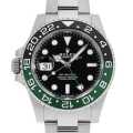 - 2022年のバーゼルワールドで発表された異色の"GMTマスター"です。これまでになかったグリーン×ブラックのツートンベゼルもさることながら、ムーブメントCal.3285を反転させることで9時位置にリューズ・デイト表示を配した、レフティ仕様の逸品です。特筆すべきは、高精度クロノメーター認定機であること。一般的にムーブメントは姿勢差によって精度が大きく変わるものですが、Cal.3285を反転させているにも関わらず、優秀な正確性と信頼性を発揮しています。なお、ヘッドとブレスレットの重量バランスが絶妙かつイージーリンクが搭載されておりますので、右腕でも左腕でも快適な装着感を実現してくれます。パワーリザーブ約70時間、100m防水仕様。