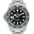 - 2022年のバーゼルワールドで発表された異色の"GMTマスター"です。これまでになかったグリーン×ブラックのツートンベゼルもさることながら、ムーブメントCal.3285を反転させることで9時位置にリューズ・デイト表示を配した、レフティ仕様の逸品です。特筆すべきは、高精度クロノメーター認定機であること。一般的にムーブメントは姿勢差によって精度が大きく変わるものですが、Cal.3285を反転させているにも関わらず、優秀な正確性と信頼性を発揮しています。なお、ヘッドとブレスレットの重量バランスが絶妙かつイージーリンクが搭載されておりますので、右腕でも左腕でも快適な装着感を実現してくれます。パワーリザーブ約70時間、100m防水仕様。