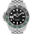 - 2022年のバーゼルワールドで発表された異色の"GMTマスター"です。これまでになかったグリーン×ブラックのツートンベゼルもさることながら、ムーブメントCal.3285を反転させることで9時位置にリューズ・デイト表示を配した、レフティ仕様の逸品です。特筆すべきは、高精度クロノメーター認定機であること。一般的にムーブメントは姿勢差によって精度が大きく変わるものですが、Cal.3285を反転させているにも関わらず、優秀な正確性と信頼性を発揮しています。なお、ヘッドとブレスレットの重量バランスが絶妙かつイージーリンクが搭載されておりますので、右腕でも左腕でも快適な装着感を実現してくれます。パワーリザーブ約70時間、100m防水仕様。