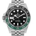 - 2022年のバーゼルワールドで発表された異色の"GMTマスター"です。これまでになかったグリーン×ブラックのツートンベゼルもさることながら、ムーブメントCal.3285を反転させることで9時位置にリューズ・デイト表示を配した、レフティ仕様の逸品です。特筆すべきは、高精度クロノメーター認定機であること。一般的にムーブメントは姿勢差によって精度が大きく変わるものですが、Cal.3285を反転させているにも関わらず、優秀な正確性と信頼性を発揮しています。なお、ヘッドとブレスレットの重量バランスが絶妙かつイージーリンクが搭載されておりますので、右腕でも左腕でも快適な装着感を実現してくれます。パワーリザーブ約70時間、100m防水仕様。
