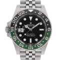 - 2022年のバーゼルワールドで発表された異色の"GMTマスター"です。これまでになかったグリーン×ブラックのツートンベゼルもさることながら、ムーブメントCal.3285を反転させることで9時位置にリューズ・デイト表示を配した、レフティ仕様の逸品です。特筆すべきは、高精度クロノメーター認定機であること。一般的にムーブメントは姿勢差によって精度が大きく変わるものですが、Cal.3285を反転させているにも関わらず、優秀な正確性と信頼性を発揮しています。なお、ヘッドとブレスレットの重量バランスが絶妙かつイージーリンクが搭載されておりますので、右腕でも左腕でも快適な装着感を実現してくれます。パワーリザーブ約70時間、100m防水仕様。