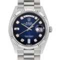 - ロレックスの最上級ラインとして1956年に誕生以来、最高級の素材と質感に拘ったハイクラスシリーズデイデイト。 素材にはケースとブレスレットにホワイトゴールドのを採用。さらに、ダイアルには8粒のダイヤモンドと2粒のバゲットダイヤモンドが配されております。高級感溢れるゴージャスな逸品です。パワーリザーブ約70時間仕様。