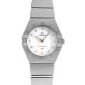 - 本モデルは、厚さわずか8mmのスリムケースとしなやかにフィットするリンクブレスレットが特徴。腕元にしっくりと馴染むサイズ感で、どんな装いにも洗練されたアクセントを加えます。ダイアルには、シルク生地を思わせるクロス模様が施されたシルバー文字盤を採用。12粒のダイヤモンドインデックスが、光を受けて繊細に輝きます。さらに、針・インデックスの台座・OMEGAロゴ・6時位置の星には、オメガ独自の18Kセドナゴールドを使用。スケルトン仕様のシャープな針は、マンハッタンの摩天楼をイメージし、都会的なデザインを演出しています。アイコニックなローマ数字入りのベゼルを、4つの爪がしっかりと掴む構造も健在。