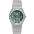 - オメガを代表する最もオーソドックスでドレッシーなデザインの"コンステレーション"。ケースに施された有名なハーフムーンデザインと爪、リンクブレスレットが特徴です。星の正確な動きにインスピレーションを得て誕生した"コンステレーション"ですが、こちらはメテオライトを採用したスペシャルモデルで、星というテーマを一歩前進させました。インデックスとベゼルにあしらわれたダイヤモンドとグリーンのコーティングが施されたメテオライト、その隕石がもつ唯一無二の模様がさらにラグジュアリーな雰囲気を漂わせています。ケースバックにはコンステレーションを象徴する天文台のメダリオンが施されました。またムーブメントには電池の寿命を最大化する新しいクォーツキャリバー、オメガ4061を搭載。3気圧防水。