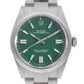 - 2025年発表、オイスターパーペチュアル Ref.134300。旧モデルRef.124300と比べケース径はいずれも41mmと変わりませんが、ケースシェイプはわずかに見直されており、装着時のフィット感が一層自然になっています。ラグの角度やブレスレットとの接続部においては、繊細な調整が施され、視覚的にも一段と洗練された印象です。今回のモデルチェンジにおける最大の変化はダイアルの仕上げにあります。旧モデルではサンレイ仕上げが採用されていましたが、進化した本モデルでは、艶やかで均一なラッカー仕上げのダイアルへと刷新。よりモダンで鮮やかな発色が際立ち、全体として若々しくポップな印象を与えています。ムーブメントには自社製キャリバー3230を搭載。