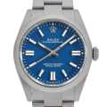 - 2025年発表、オイスターパーペチュアル Ref.134300。旧モデルRef.124300と比べケース径はいずれも41mmと変わりませんが、ケースシェイプはわずかに見直されており、装着時のフィット感が一層自然になっています。ラグの角度やブレスレットとの接続部においては、繊細な調整が施され、視覚的にも一段と洗練された印象です。今回のモデルチェンジにおける最大の変化はダイアルの仕上げにあります。旧モデルではサンレイ仕上げが採用されていましたが、進化した本モデルでは、艶やかで均一なラッカー仕上げのダイアルへと刷新。よりモダンで鮮やかな発色が際立ち、全体として若々しくポップな印象を与えています。ムーブメントには自社製キャリバー3230を搭載。