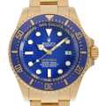 - 2024年発表、金無垢素材が眩しい"ディープシー"です。逆回転防止ベゼルにより、ダイバーは潜水時間および減圧時間を正確かつ安全に管理することが可能。マーカーには長時間発光を持続する素材を封入したカプセルが組み込まれており、暗所や深海においても優れた視認性を確保します。目盛りには、PVD(物理蒸着)加工によるイエローゴールドのコーティングが施され、機能性の中に上質な輝きを添えています。ダイアルの美しいブルーが繊細な海の色調を描き出し、イエローゴールド製ケースとブレスレットによって、鮮やかに引き立てられています。工具を使わずにブレスレットの長さを微調整できるグライドロックエクステンションシステムを装備。ダイビングスーツの上からでも快適な装着感を実現する、プロフェッショナルダイバーズウォッチにふさわしい完璧な完成度です。