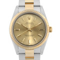 - 金属塊から削りだした防水性の高い「オイスターケース」と、全回転式ローターを搭載した「パーペチュアル機構」を搭載したモデルです。デイトジャストよりもリーズナブルで、ダイヤルコレクションが豊富に揃い、ケース違いでバリエーションが豊かなため、年代を問わず幅広い層に受け入れられています。フルーテッドベゼルとコンビのデザインが華やかなモデルです。