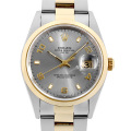 - 男女問わず永久のステータスシンボルとも言える「ロレックス」。こちらは旧型デイトジャストのメンズモデルRef.15203です。グレーダイアルに配置された飛びアラビアインデックスが特徴です。