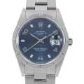 - 金属塊から削りだした防水性の高いオイスターケースと、全回転式ローターを搭載したパーペチュアル機構を持つ、オイスターパーペチュアル デイト。こちらは「エンジンターンドベゼル」と呼ばれる規則的なパターンを持つベゼルが印象的なモデルです。すっきりとしたポリッシュや、煌びやかなフルーテッドとは異なる雰囲気で、時計全体の印象を引き締めます。