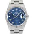 - 金属塊から削りだした防水性の高いオイスターケースと、全回転式ローターを搭載したパーペチュアル機構を持つ、オイスターパーペチュアル デイト。こちらは「エンジンターンドベゼル」と呼ばれる規則的なパターンを持つベゼルが印象的なモデルです。すっきりとしたポリッシュや、煌びやかなフルーテッドとは異なる雰囲気で、時計全体の印象を引き締めます。