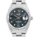 - 金属塊から削りだした防水性の高いオイスターケースと、全回転式ローターを搭載したパーペチュアル機構を持つ、オイスターパーペチュアル デイト。こちらは「エンジンターンドベゼル」と呼ばれる規則的なパターンを持つベゼルが印象的なモデルです。すっきりとしたポリッシュや、煌びやかなフルーテッドとは異なる雰囲気で、時計全体の印象を引き締めます。