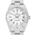 - 金属塊から削りだした防水性の高いオイスターケースと、全回転式ローターを搭載したパーペチュアル機構を持つ、“オイスターパーペチュアル デイト”を入荷致しました。こちらは「エンジンターンドベゼル」と呼ばれる規則的なパターンを持つベゼルが印象的なモデルです。スッキリとしたポリッシュや、煌びやかなフルーテッドとは異なる雰囲気で、時計全体の印象を引き締めます。また、文字盤のホワイトとセンターローマインデックスの組合せが個性的で、他の方と一味違う時計をお求めの方にもお薦めです。