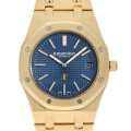 - オーデマピゲを代表し、ラグジュアリースポーツウォッチの代名詞とも言える"ロイヤルオーク"。多くの人気モデルを産み出してきたジェラルドジェンタ氏によりデザインされ、1972年のファーストモデルから高い人気を誇るスポーツウォッチです。1972年に登場した初代“ジャンボ”をオマージュした本モデルは、自社製の自動巻きムーブメントを搭載し、高い精度と信頼性はもちろん、快適な装着感と日常使いに適した機能性も兼ね備えています。ケースとブレスレットには、贅沢に18Kイエローゴールドを採用。深みのあるブルーが印象的な「プチタペストリー」ダイアルと組み合わさることで、エレガンスと力強さを兼ね備えた圧倒的な存在感を放ちます。