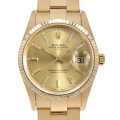 - 男女問わず永久のステータスシンボルとも言える「ロレックス」。こちらはオイスターパーペチュアルデイトのK18イエローゴールドモデルです。デイトジャストよりもリーズナブルで、ダイヤルコレクションが豊富に揃い、ケース違いでバリエーションが豊かなため、年代を問わず幅広い層に受け入れられています。シャンパンゴールドの文字盤に、インデックスはアップライトのバーインデックスのシンプルながら華やかなデザインです。