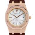 - 18Kピンクゴールドケースにストラップを組み合わせたロイヤルオークです。スポーツラインという位置付けのロイヤルオークですが、大人のドレスウォッチとして活躍してくれそうな一本です。自動巻きCal.3120を搭載。シースルーバック。50m防水。
