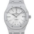 - オーデマピゲを代表し、ラグジュアリー・スポーツウォッチの代名詞とも言えるロイヤルオーク。こちらは2012年に発表されたモデルです。前作よりケース径を2mmサイズアップし、12時位置にあったAPロゴはダブルバーに変更。ベゼルの幅を狭く、文字盤を大きくしました。搭載ムーブメントは前作と同じCal.3120。そのためケース厚はほとんど変わっていません。新設計のAPフォールディングクラスプを採用し、剛性と操作性は抜群です。