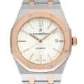 - 2015年発表 ロイヤルオークのコンビモデルです。ダイアルにはグランドタペストリーを採用、ケースは39mmから41mmにサイズアップし、一段とスポーティーな雰囲気になりました。ムーブメントには60時間のロングパワーリザーブを誇る自社製キャリバー3120を搭載しています。コンビモデルならではの高級感をお楽しみ下さい。
