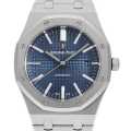 - オーデマ・ピゲを代表し、ラグジュアリー・スポーツウォッチの代名詞とも言えるロイヤル・オーク。多くの人気モデルを産み出してきたジェラルド・ジェンタ氏によりデザインされ、1972年のファーストモデルから高い人気を誇るスポーツウォッチです。こちらは「グランド・タペストリー」パターンのブルーダイアルが特徴的なブティック限定モデルです。搭載ムーブメントは自社製自動巻キャリバー3120。シースルーバックからその精巧な動きを眺める事が出来ます。ケース厚は 9.8mm。防水性 50m。