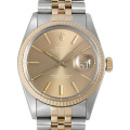 - 1945年にリリースされ、今やロレックスの顔とも言えるデイトジャストは、金属塊から削りだした防水性の高いオイスターケース、午前0時頃瞬時に日付けが変わるデイトジャスト機構、全回転式ローターを搭載したパーペチュアル機構と、ロレックス三大機構を搭載したモデルです。ブラウンの文字盤とイエローゴールドのベゼルが調和し、高級感あふれる華やかなデザインに仕上がっています。