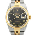 - 永遠のステータスシンボルとも言えるロレックスの“デイトジャスト"。様々なバリエーションがありますが、こちらはK18イエローゴールドとステンレスのコンビモデルのため、エレガントな印象を与えます。また、現行品と違いプラスチック風防を備えており、アンティーク風の印象です。