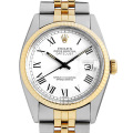 - 1945年にリリースされ、今やロレックスの顔とも言える“デイトジャスト”は、金属塊から削りだした防水性の高いオイスターケース、午前0時頃瞬時に日付けが変わるデイトジャスト機構、全回転式ローターを搭載したパーペチュアル機構と、ロレックス三大機構を搭載したモデルです。こちらは大きめのローマンインデックスと針がともに黒塗りにされた「バックリーダイヤル」と呼ばれる個体で、コレクションとしてもお勧めです。