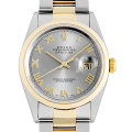 - 男女問わず永遠のステータスシンボルとも言えるロレックスの“デイトジャスト”。こちらはベゼル、リューズ、ブレスにK18イエローゴールドが使用され、腕元をゴージャスに演出してくれる一本になっています。フルーテッドベゼル仕様のRef.16233と比べ流通量が少なく、中古市場でも殆ど見かけないモデルです。