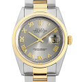 - 男女問わず永遠のステータスシンボルとも言えるロレックスの“デイトジャスト”。こちらはベゼル、リューズ、ブレスにK18イエローゴールドが使用され、腕元をゴージャスに演出してくれる一本になっています。フルーテッドベゼル仕様のRef.16233と比べ流通量が少なく、中古市場でも殆ど見かけないモデルです。