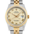 - 1945年に誕生し、今やロレックスの顔とも言えるデイトジャスト。ロレックスの三大機構(オイスターケース、パーペチュアル機構、デイトジャスト機構)を全て備えたモデルです。ダイアル色・ケース素材などの組み合わせは多岐に渡り、非常に多彩なバリエーションが存在するのが最大の魅力です。