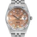 - 1945年に誕生し、今やロレックスの顔とも言える"デイトジャスト"。ロレックスの三大機構(オイスターケース、パーペチュアル機構、デイトジャスト機構)を全て備えたモデルです。ダイアル色・ケース素材などの組み合わせは多岐に渡り、非常に多彩なバリエーションが存在するのが最大の魅力です。